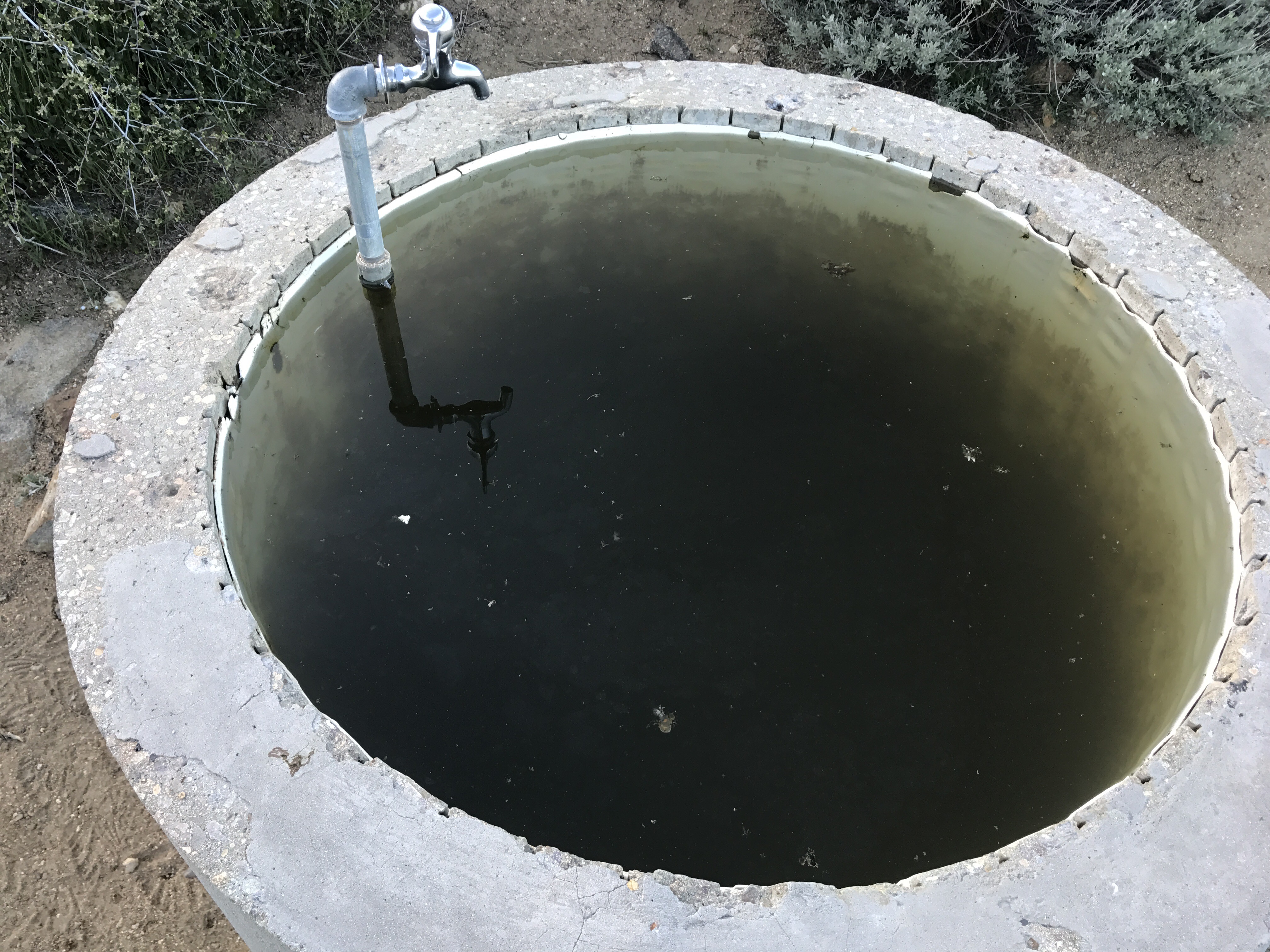 Don’t fret: the water from the spigot is clear, but does need filtering. Someof the desert water sources are cisterns like this or are caches of one gallon jugs that friendly people keep filling.