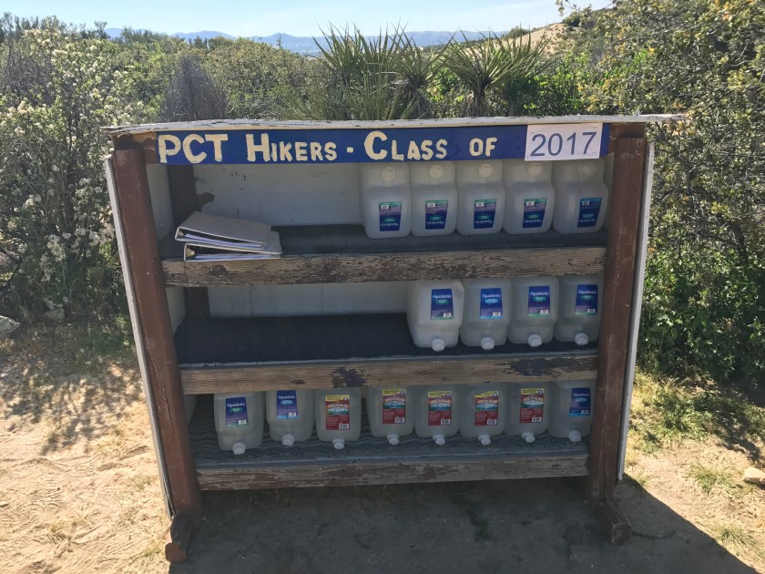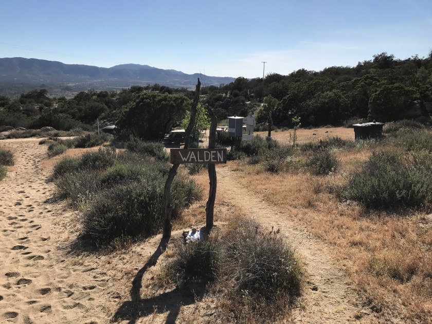 It was another long, hot day. The trail passed by the edge of a small remote community and one of the residents has created a wonderful Rest Area for PCT hikers. This Trail Angel has named it Walden and provided picnic tables, water, sodas, trash and recycle bins, and a tiny library. It is dedicated to Henry David Thoreau and even has tow life sized cutouts of the author with inspirational quotes.