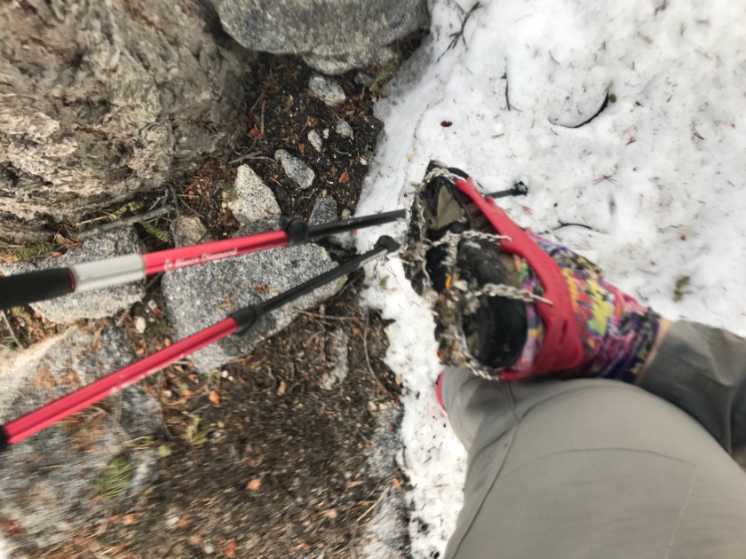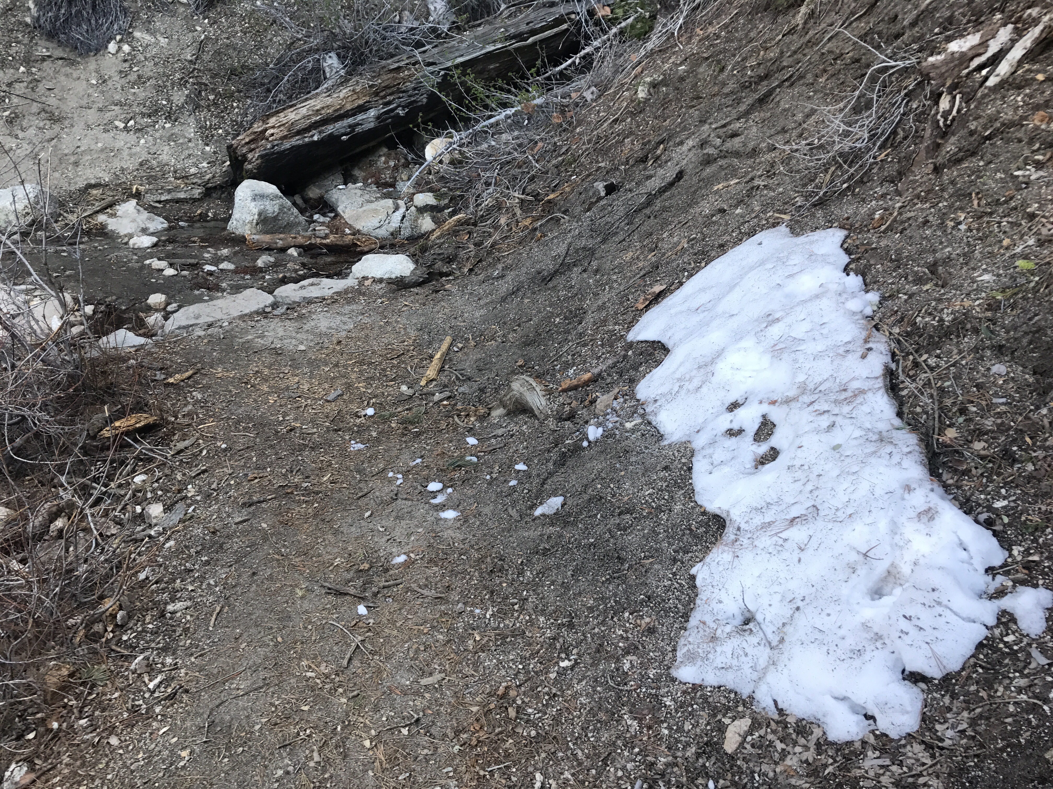 Note the patchy snow – it was only bad the first mile (I thought) and I decided there was no going back.  It was chilly but there was plenty of water.