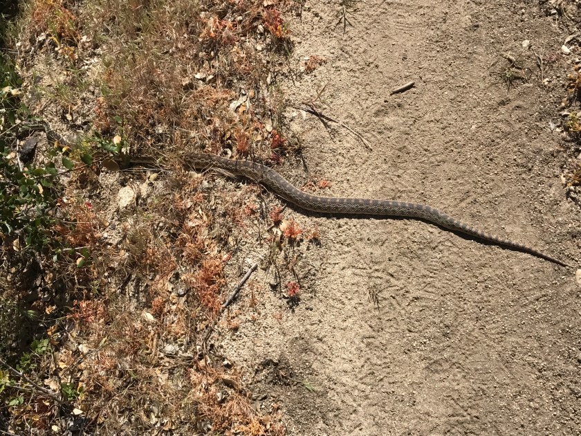 and the lethargic gopher snake – this guy/gal did not move and I had to step over him/her.