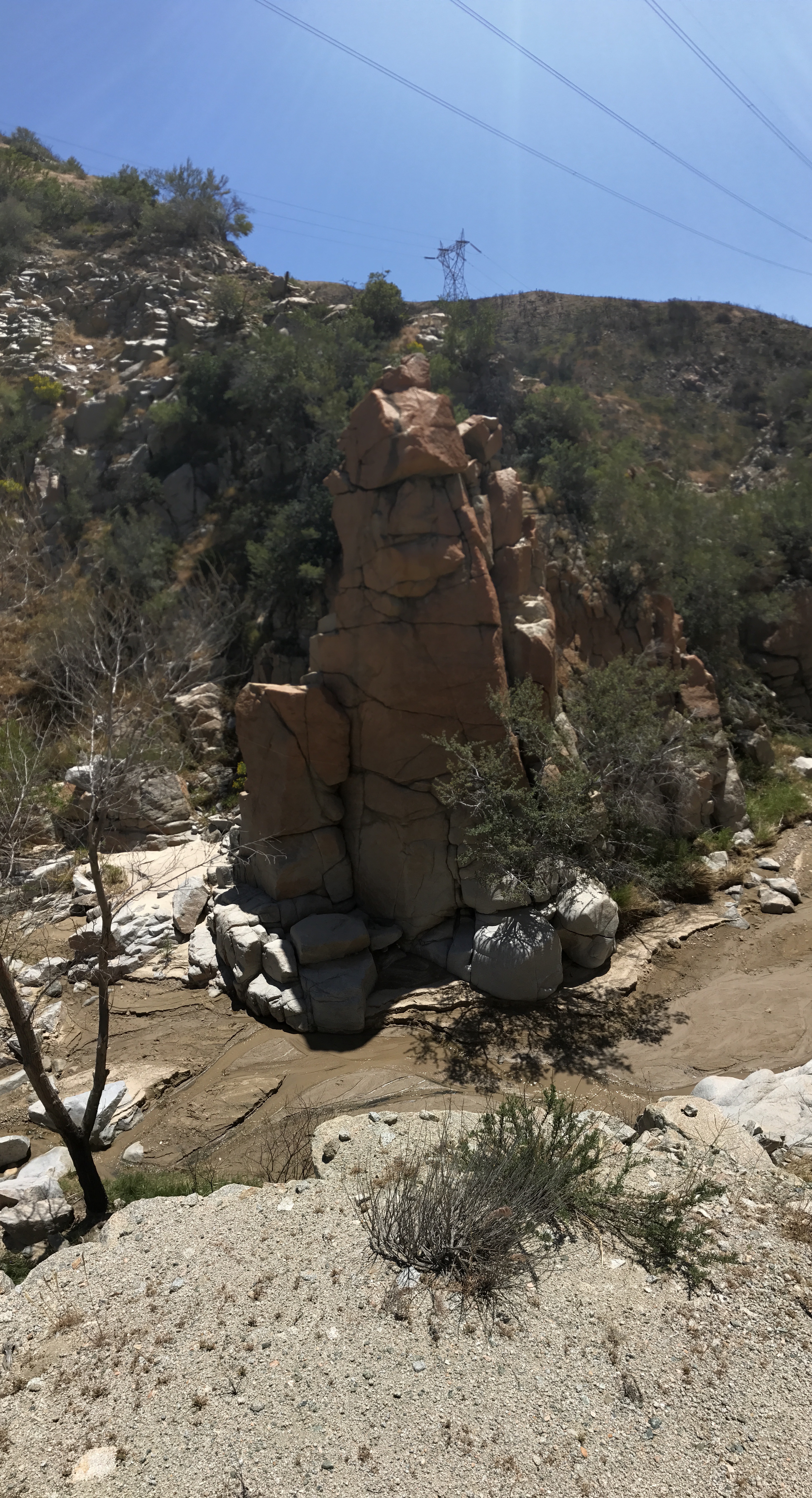 As I walked down the creekbed to I saw an interesting rock tower the creek was running around