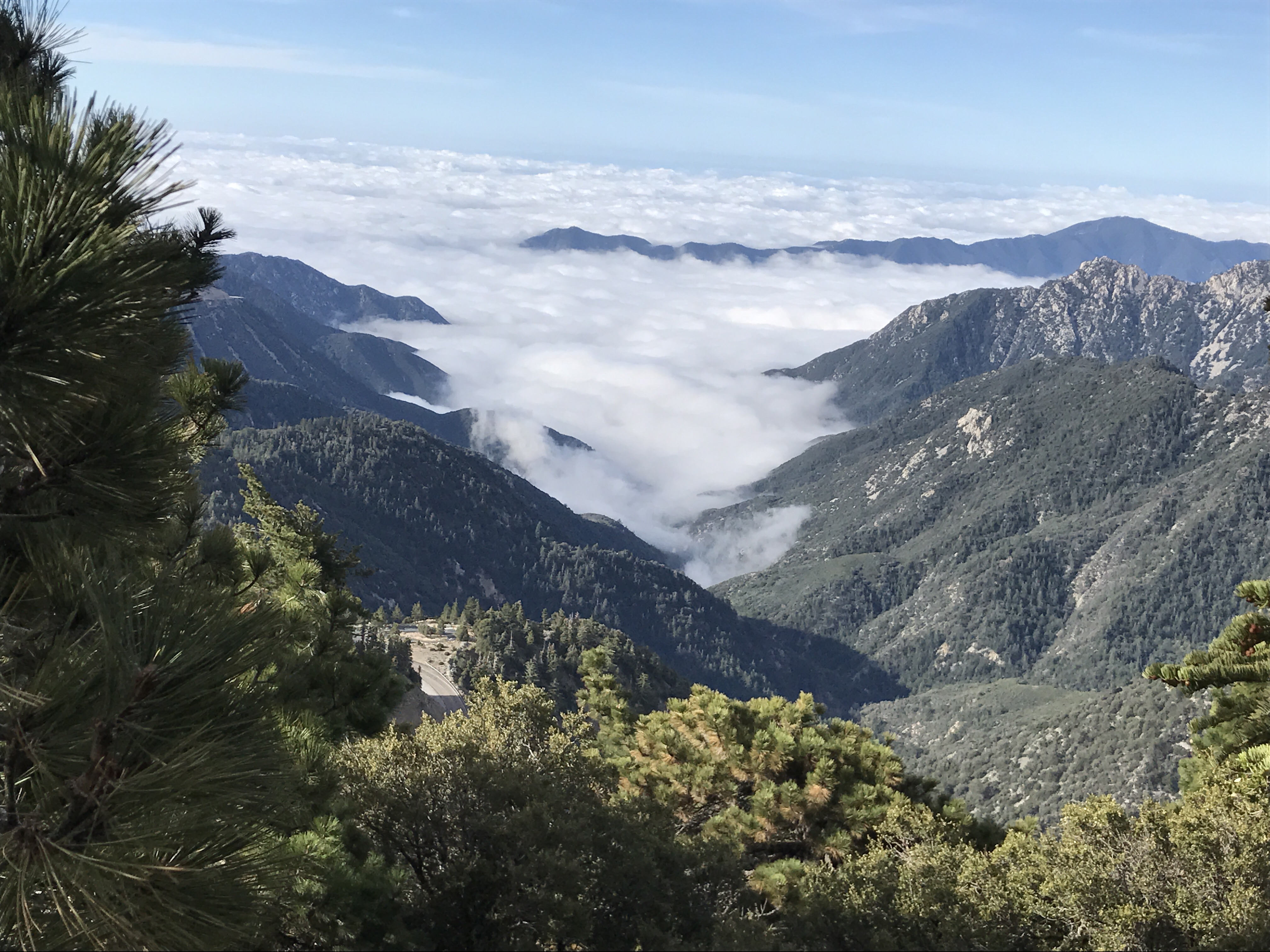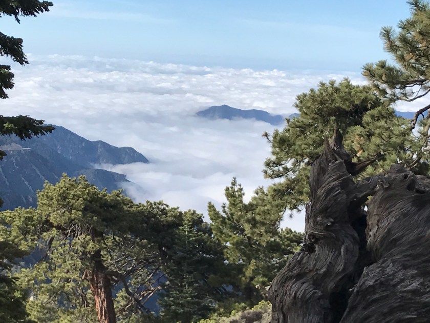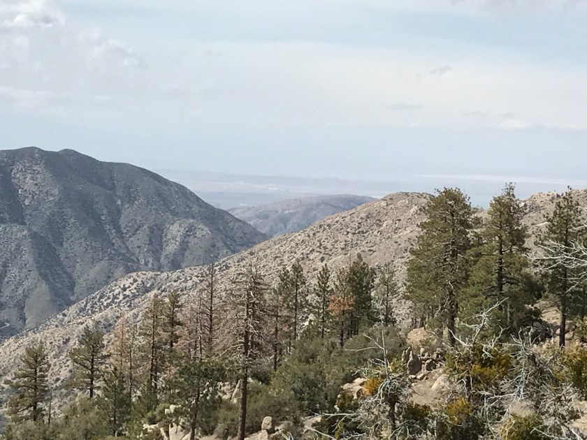 It was a cold and windy morning. I got up and packed up but already most of the other hikers were already gone – wow, they are fast! The trail rose up, over, and down ridges that Hwy 2 wins around. On top of one such ridge I got another view of where LA should be.