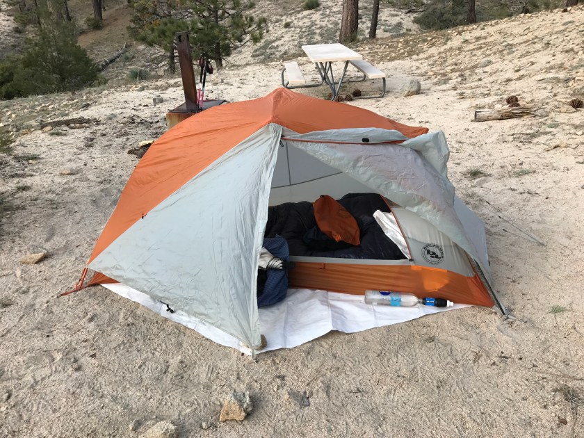 I arrived at my intended camp site, a closed for the season Boy Scout camp. I had the entire place to myself. As it was again cold and windy I set up my tent and was in bed before sunset. Here’s a view of my tent.