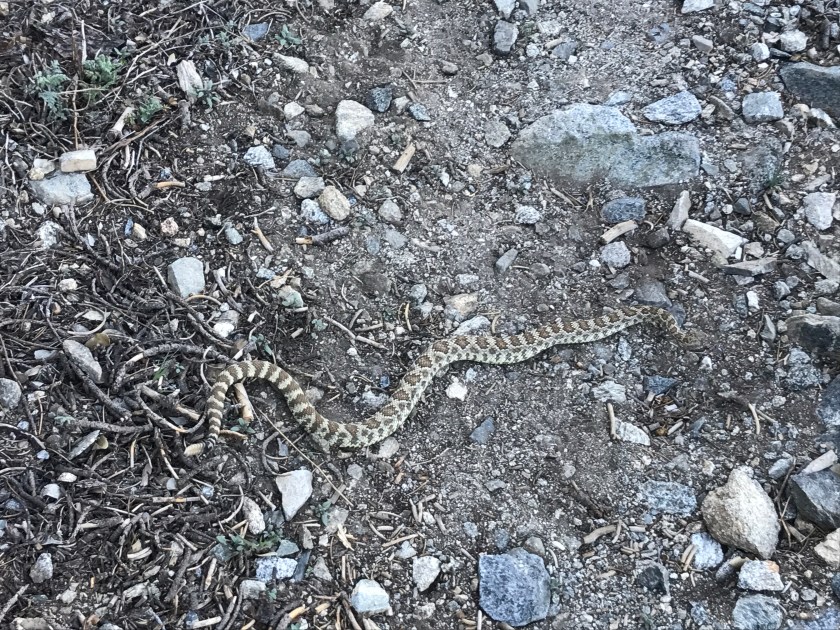 He/she was cold on the shady side of the mountain and needed a bit of coaxing with my hiking poles to move off the trail.