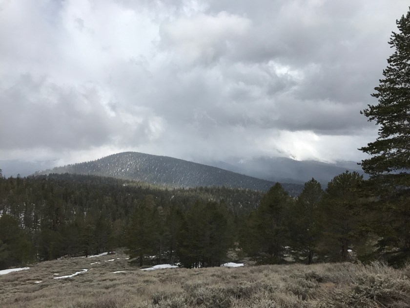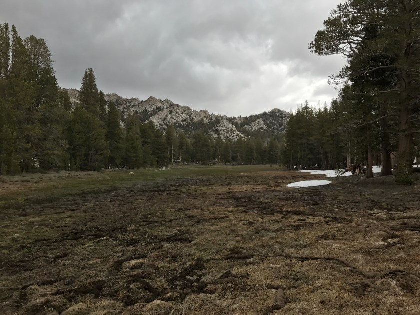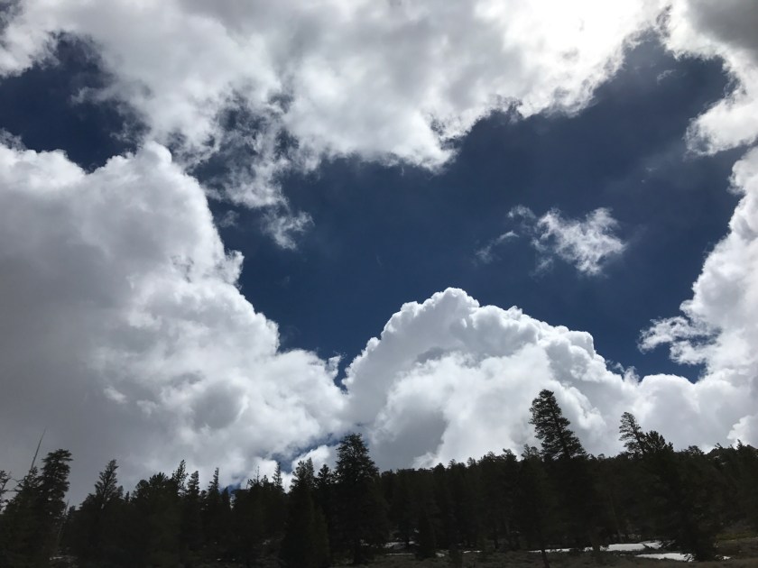 The weather report I pulled from my satellite texting system said there was a 60% chance of rain this morning. The clouds continued to build as I hiked, but it was great to be hiking in the Sierras!