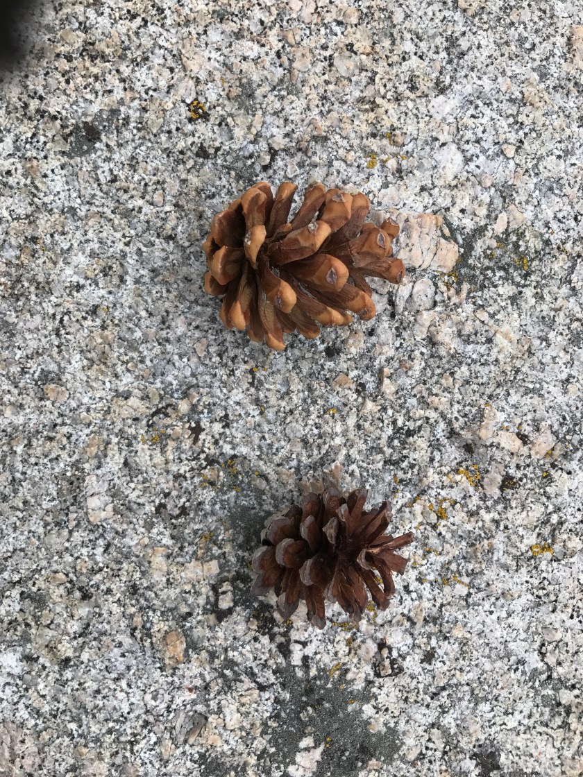 At this higher elevation the forest consists of Foxtail and Lodgepole Pines – here are their cones: