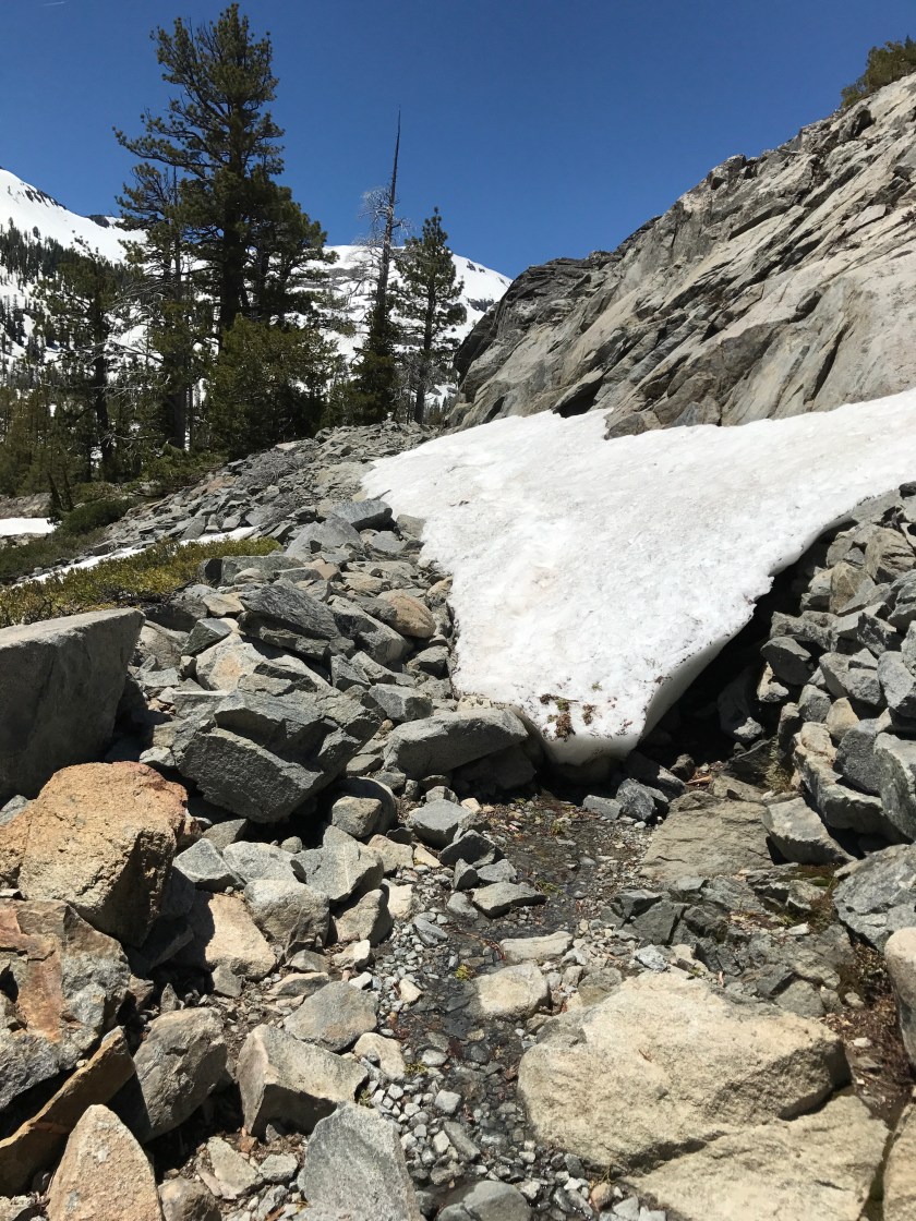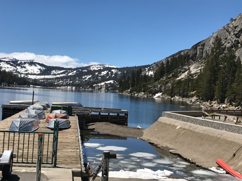 Upper Echo Lake has patches of snow (and pretty much every lake North on the PCT is completely frozen)