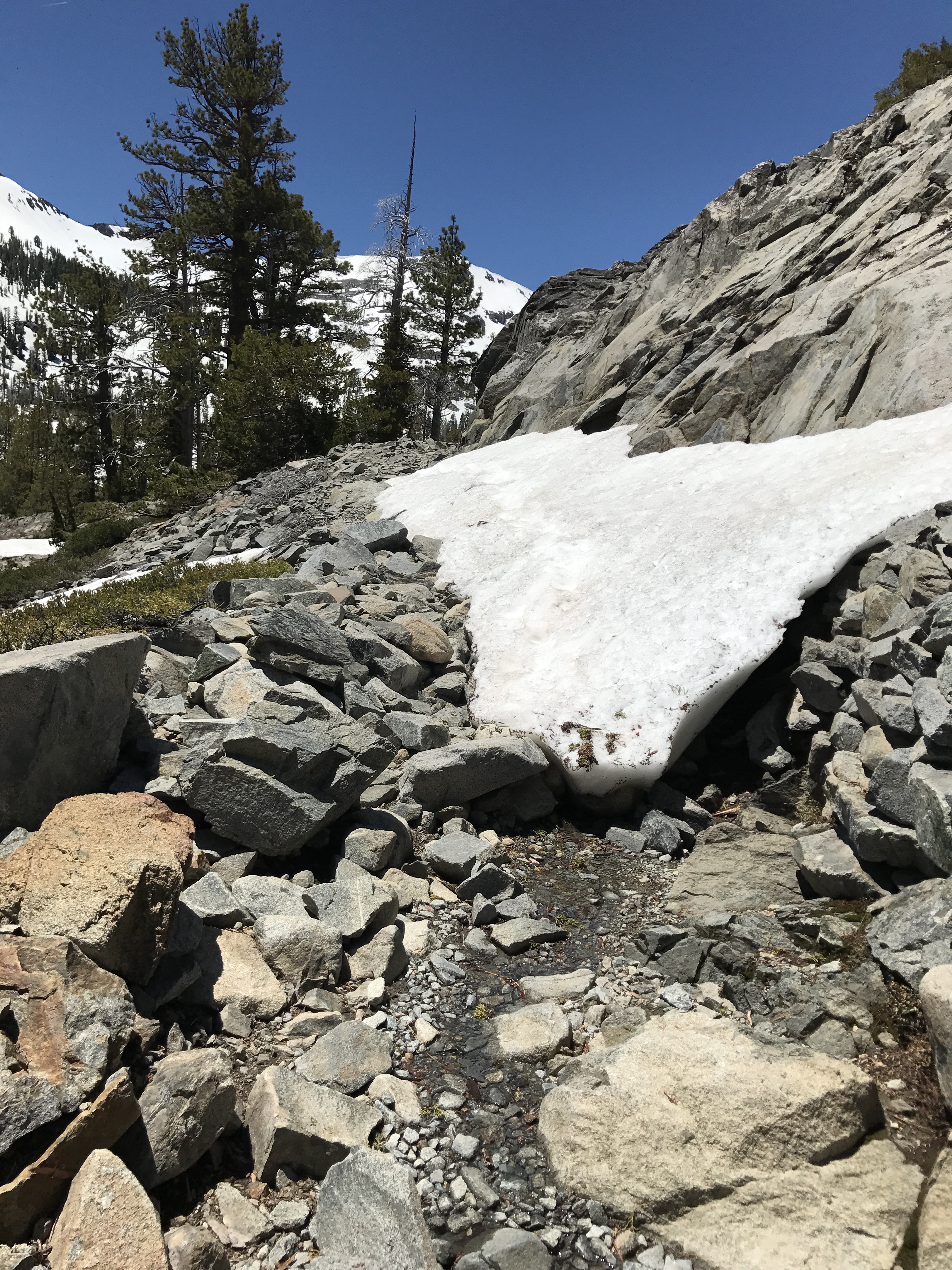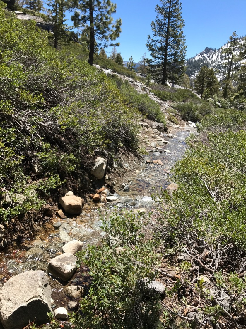 In many places it is hard to distinguish trail from stream as the snow melt is on!