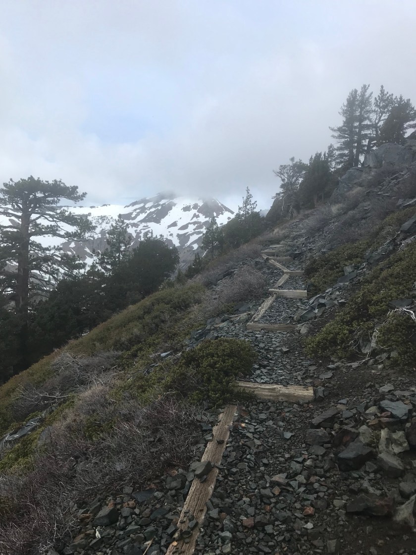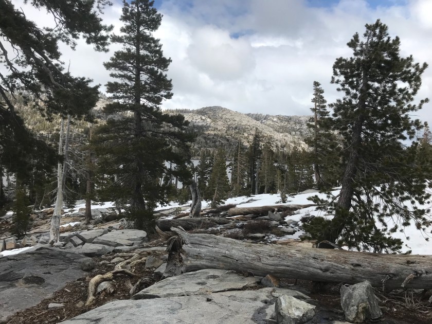 The snow was firm so I made my own route down to the lake. There was an access trail next to the lake that I followed to re-meet with the PCT.