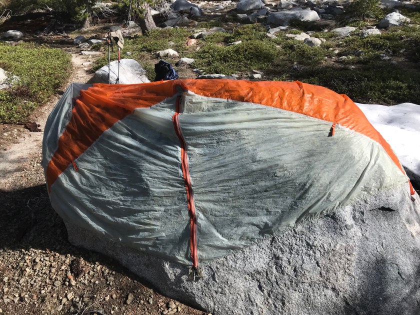 But around 3 o’clock grey thundering clouds appeared and I decided to set up camp early. I would have liked to go another 3 miles or so.