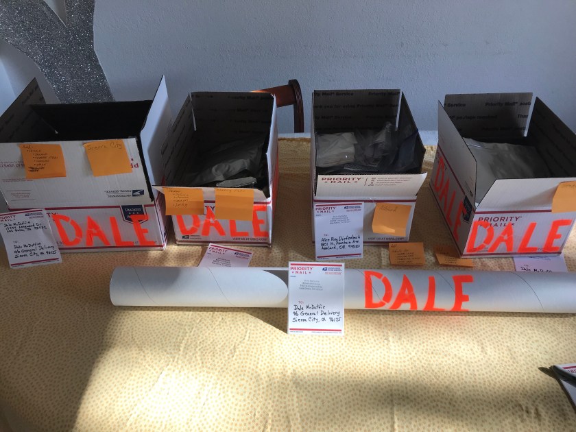 There are a lot more food resupply points on this trail segment as compared to last year. This year I will be starting my hike stove-less: no hot meals on the trail. I’ve found that snacking seems to work better for me. My plan is to purchase food at stores along the way at 9 places, and mail packages to Post Offices (General Delivery) for the rest. Half of those will be mailed from home by my wife Liz (thank you!) and the rest I will mail to myself from somewhere on the trail that has a good supermarket.