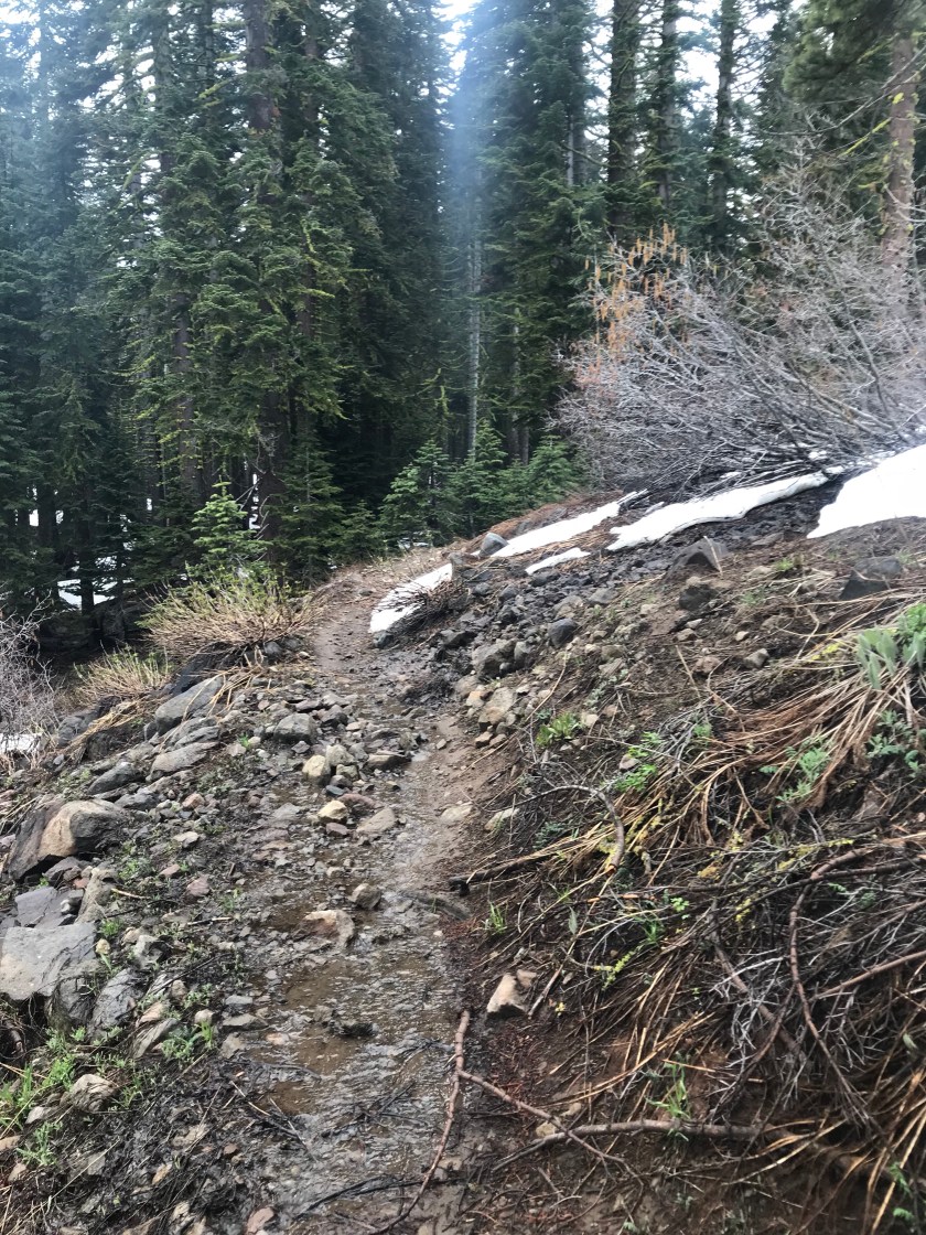 They are hiring an Uber to spirit them up to Sierra City. I thought of joining them but realized my logistical error: I have a food resupply, hiking shoes and a hiking pole waiting for me at the Post Office in Sierra City. Today is Saturday, so they close early (noon?) and Monday is a holiday! I doubt I couldn’t get there by noon and so would have to just chill somewhere until Tuesday. My former coworkers Mike, Roy and Andy would be very disappointed in me.