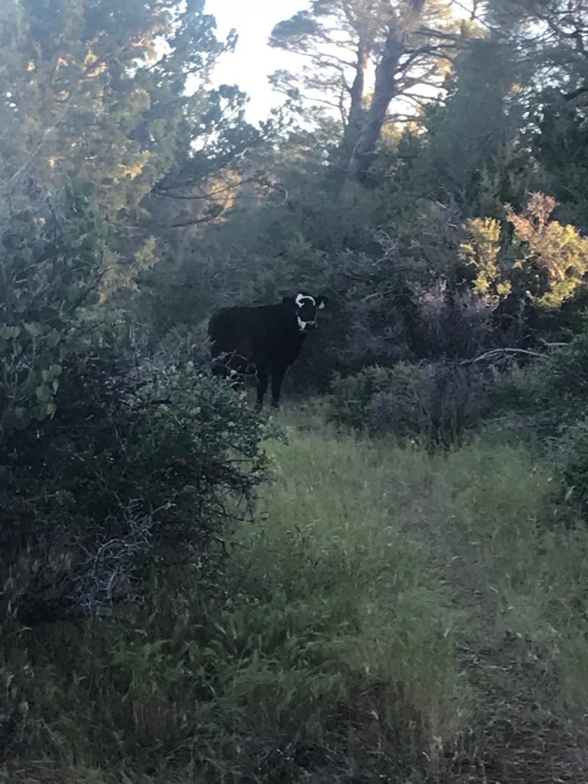 We awoke to the cows mooing and soon found how close they were. Most of them were frightened of us and made a hasty retreat into the brush, but this one was unfazed by our passing
