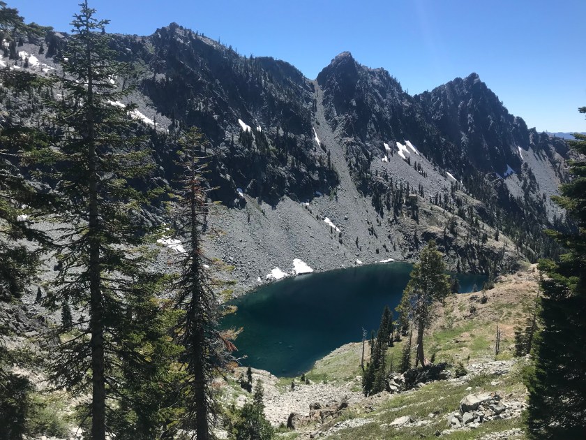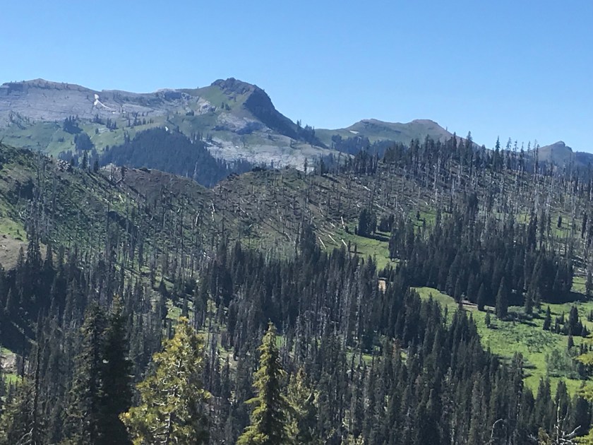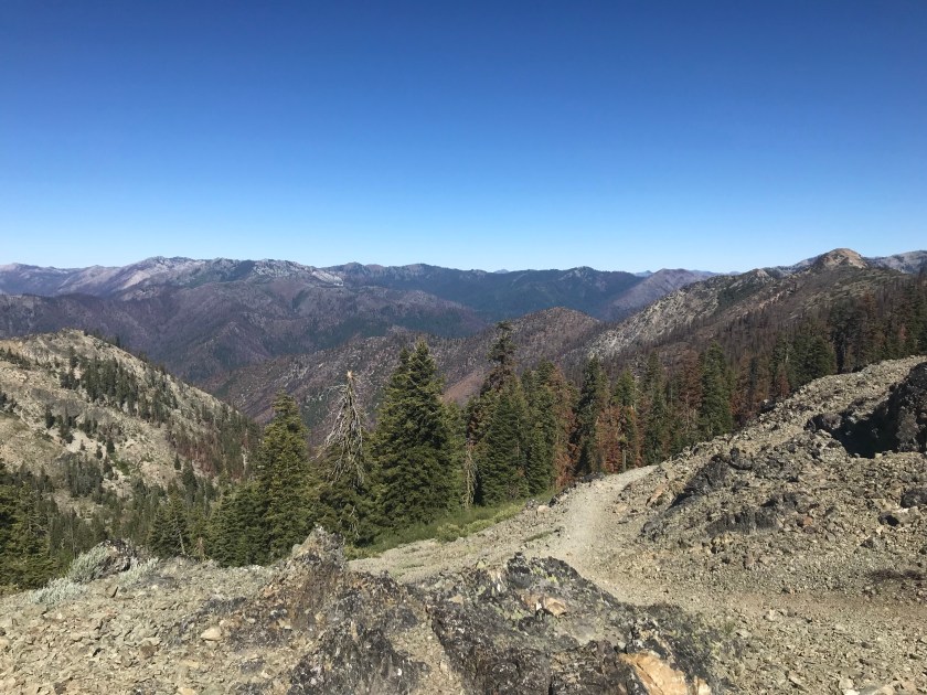The Marble Mountains are a limestone outcropping from an ancient coral reef, I am told. This is the first non granite/non-volcanic rock I’ve seen. I was told that the mix of igneous and metamorphic rocks in the mountains in the Klamath area perplexed geologists for a long time until the developed the theory of Plate Tectonics that explained how they migrated from different places and are currently here. Or so I was told by an Entomologist we met on the trail.