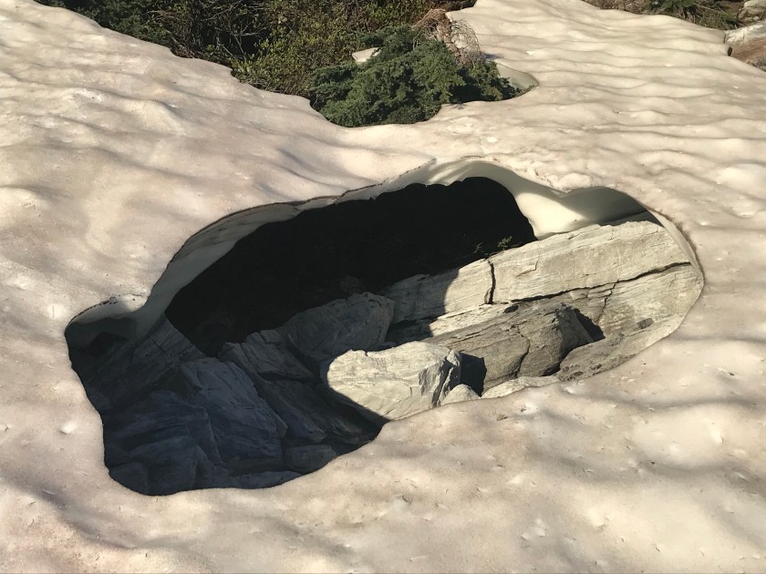 We hiked completely up and around these peaks and came upon… snow! That’s Picaso in the first photo