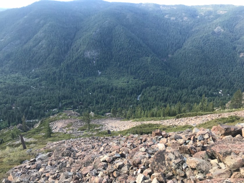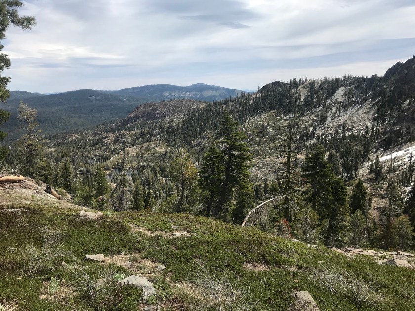 I got up at first light and started hiking up highway 49 towards the trail head. There were no cars about– the town was very quiet. I started early because I needed to hike up over 3000 feet to near the top and then around the Sierra Butte peaks that overlook Sierra City. I made good time because the weather was very cool.