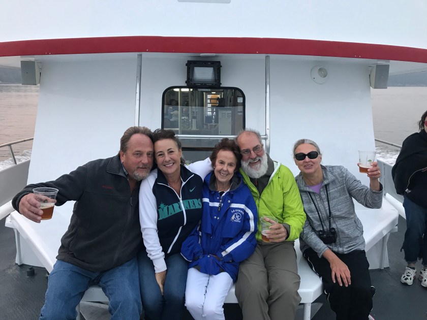That evening my family got together for a boat cruise from La Conner through Deception Pass to the Salish Sea. We spotted Osprey, Bald Eagles, porpoises and two Minke whales! Here we all are: Jack, Michele, Janet, Dale and René.