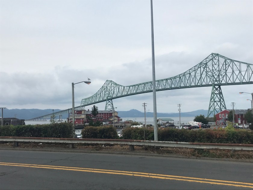 So, off to Astoria! The big deal here is crossing the mouth of the Columbia River : a bridge crossing of a whopping 4.1 miles with about a 2.5 foot shoulder for bikes to ride in.