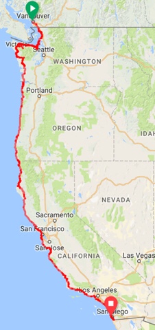 Given the summer heat and fires, staying close to the coast seems like a good idea, and so in keeping with the Canada/Mexico theme of the PCT, I’ve decided to SoBo Bicycle Camp from Canada to Mexico along the Pacific Coast.