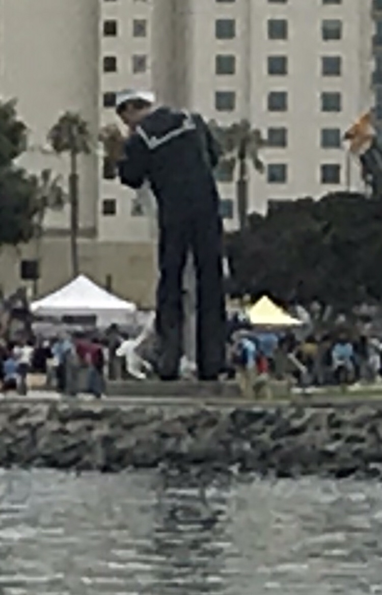 A few more miles down the road I boarded the Coronado Island ferry because the brig bridge is closed to bicyclers. I got a fuzzy picture of the famous WWII Victory Kiss statue. Worth noting that a man named Glenn McDuffie claims to be the sailor.