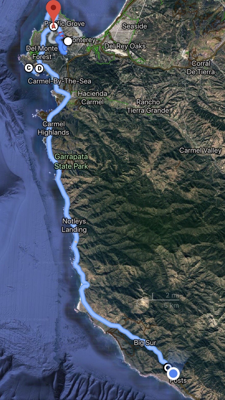 Today is a ride from Monterey to Carmel along the famous 17 Mile Drive, then on Hwy 1 to Pfeiffer Big Sur State Park.