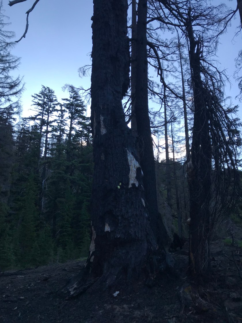 This is in another burn area where the fire sculpted some of the trees. There were some interesting fungus growing on the trees.