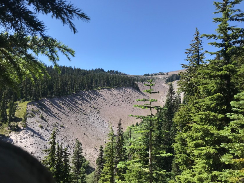 The trail crosses multiple ravines caused by melting snow coming off Mt Hood