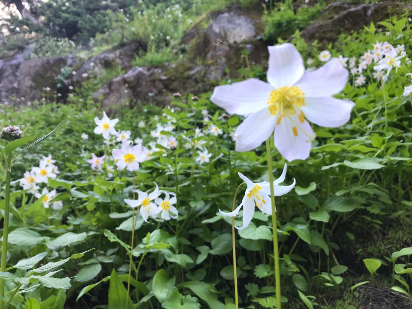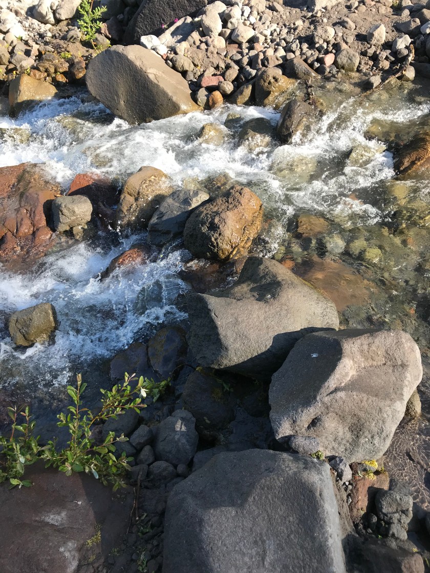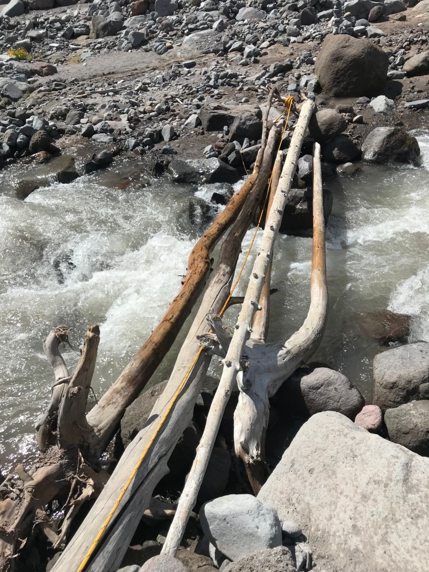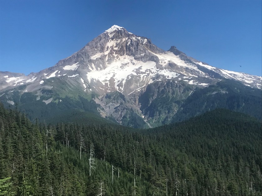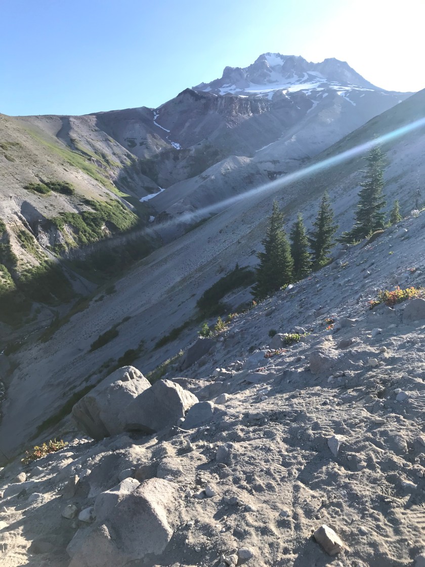 Todays goal is to cross around Mt Hood and descend the other side. The ridges carved in the mountain by eons of snow melts make it look like it has legs. I’ll be crossing those ravines and streams this morning.