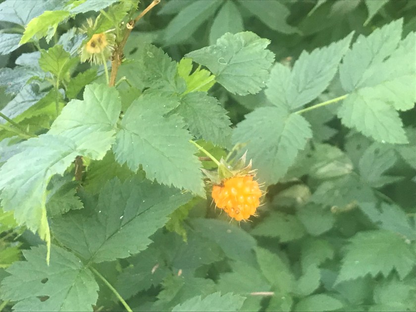 Today was also berry day. In addition to Huckleberries, I found Salmon Berries