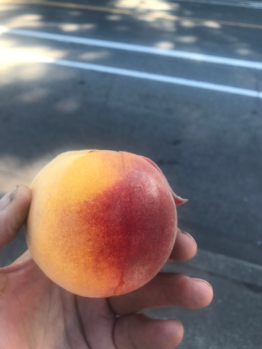 I saw a fruit stand nearby and before I could even ask the price the nice lady gave me a beautiful peach. It tasted great. She also let me try some of her Huckleberries, which were much tastier than the wild ones I’ve been munching on.