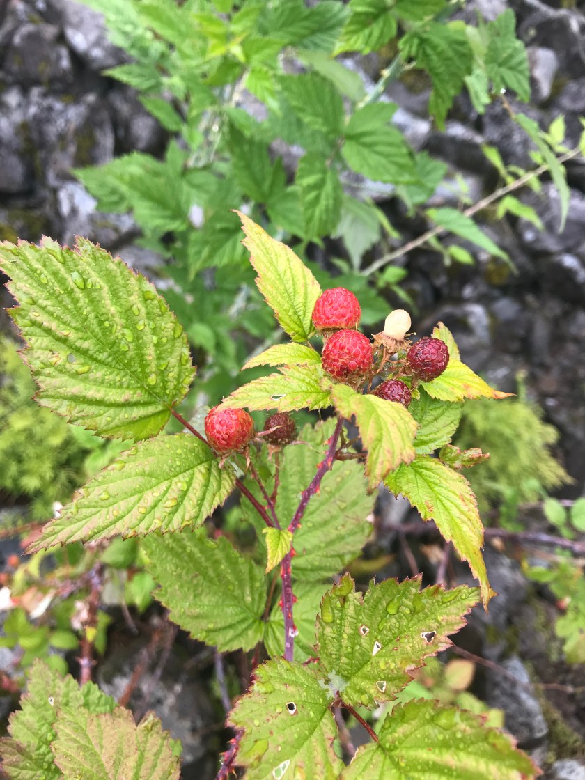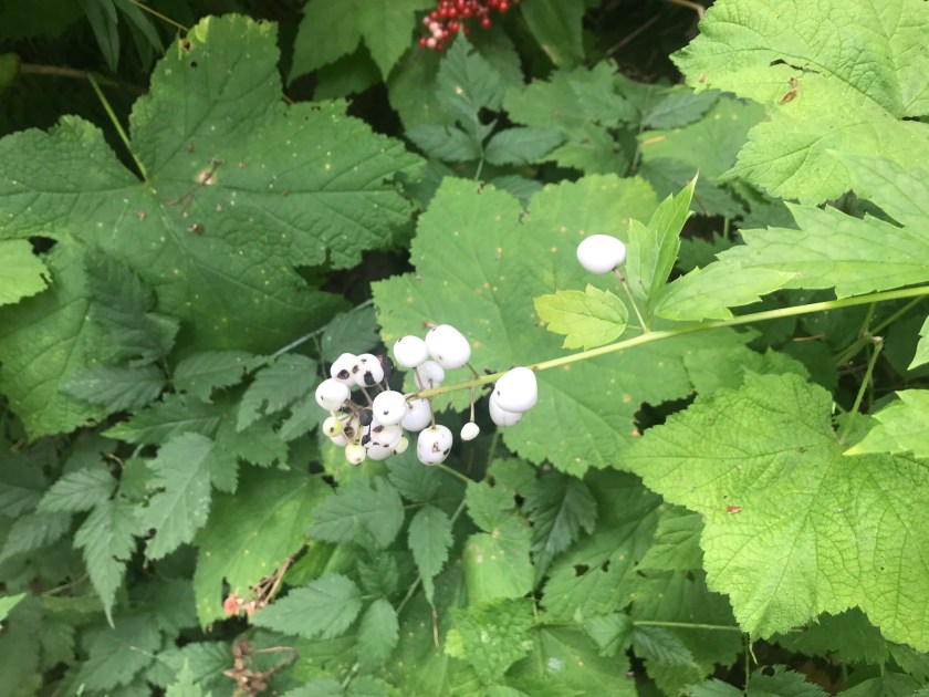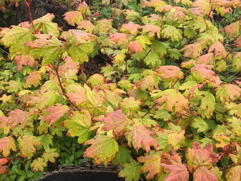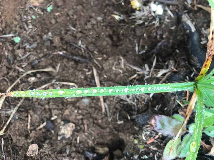 Soon mist was falling, large drops were raining from the trees, and my legs and shoes were getting wet from the overgrown bushes. It was still warm enough to stay in shorts and short sleeves, and except for my shoes, evaporation kept me from getting fully soaked. My feet were soaked, but not terribly uncomfortable.