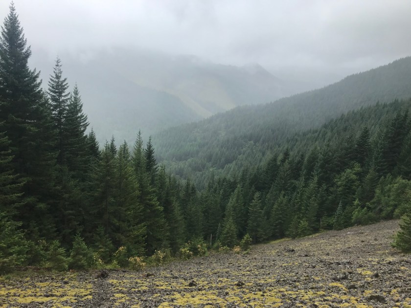 The mist/rain ended in the early afternoon. I arrived at Rock Creek and selection a site uphill from the stream hoping that other hikers would select sites next to the water. By 8 o’clock I have two others very near me. Oh well.