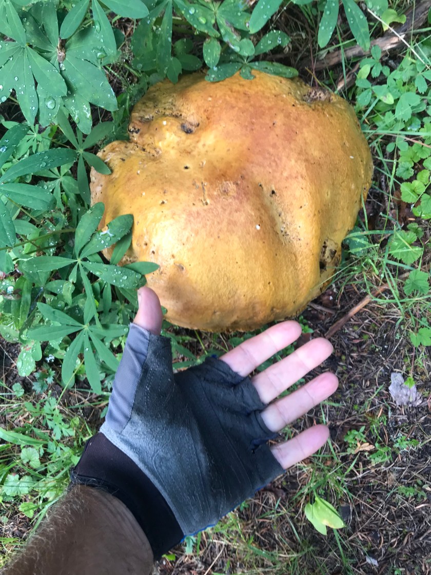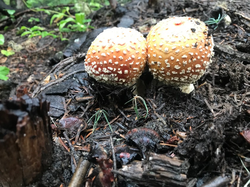 1. The first fungi photo is Amanita something, all highly toxic,some used by Siberian shamans. The second one is possibly Boletus edulis, which some people regard as edible. Enjoying your hike, wish I was there.