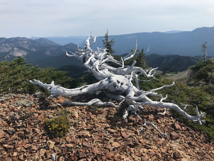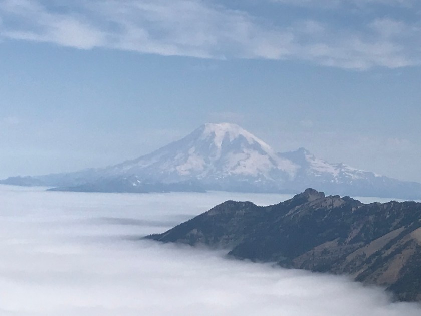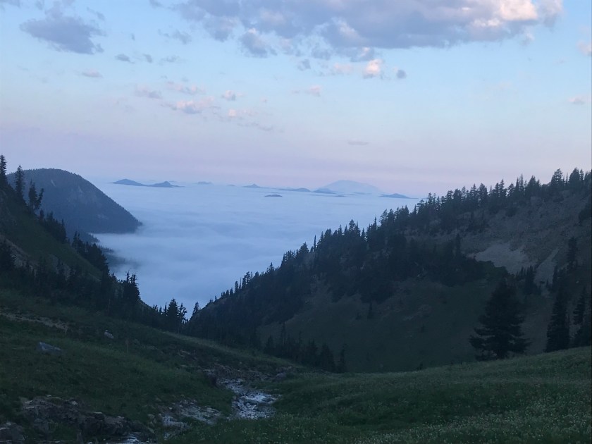 The clouds dispersed in the early evening and I saw the stars last night. I got up early and caught a photo of the Goat Rocks before sunrise