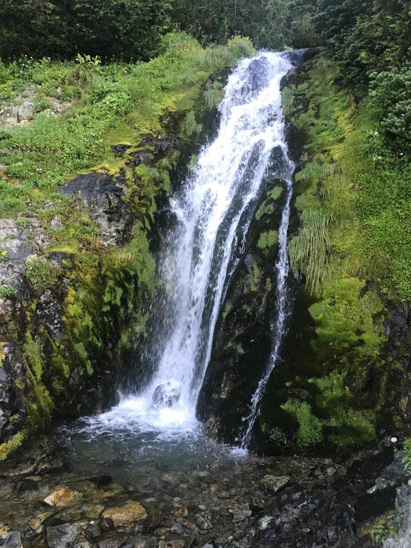 There is a small mammal that lives in almost every rock pile along the trail named a Pika. It resembles a large Hamster, but is very skittish, so I don’t have a picture of one. They do hear you coming up the trail and sound a cute alarm chirp that sounds like a child’s squeaky toy – listen here