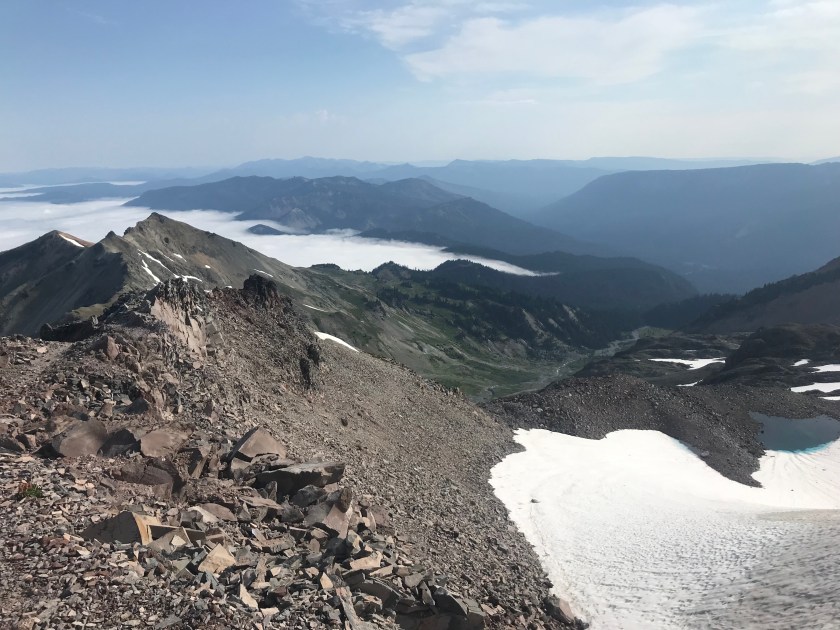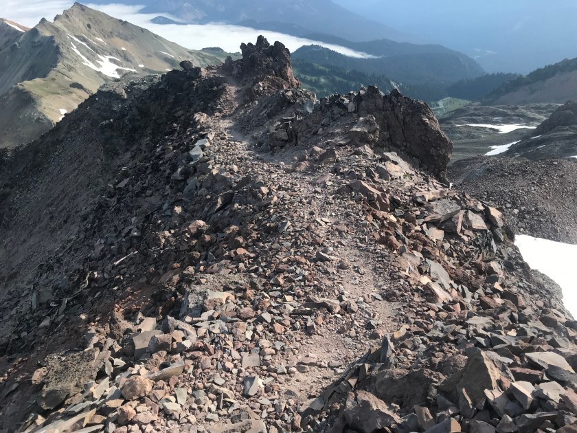 The trail leads to a section known as The Knife Edge, a high, narrow ridge of loose rocks. There was a steep and long drop off on either side of the trail… don’t slip!